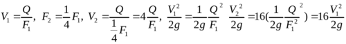 Например, если площадь поперечного сечения струйки в сечении 1 - 1 больше, чем в сечении 2 - 2 в 4 раза, скоростной напор увеличивается в 16 раз (рис. 5.4).
