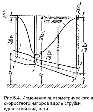 На рис. 5.4 показано изменение всех напоров вдоль струйки.