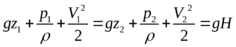 получим p1 - p2 +(z1-z2) * ρ*g = ρ* (V22- V21)/2. или