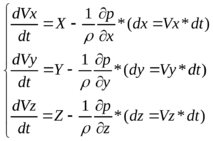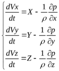 ρ*δхδyδz*(dVх/dt) = Xρ δхδyδz - (dp/dx)* δхδyδz;