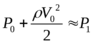 Запишем уравнение Бернулли для струйки, которая попадает в трубку вдоль ее оси. Для сечений 0-0 имеем Р0 и V0, и 1-1 P1,V1 =0: