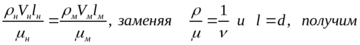 отношение коэффициентов кинематических вязкостей должно быть равно
