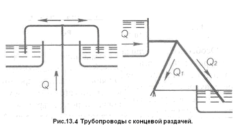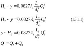 13.6. Трубопроводы с концевой раздачей. Задача о трех резервуарах.