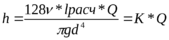 Для ламинарного режима движения для определения характеристики используется формула Вейсбаха—Дарси: