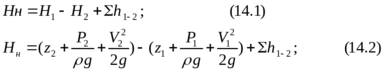 Hн +H1 = H2 + ∑hп1-2, (14.3)