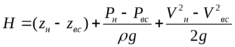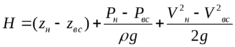 где индексами "н" и "вс" – обозначены напорная и всасывающая магистраль. Напор выражается в единицах столба перемещаемой жидкости.