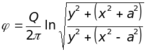 Из (6.22) следует, что эквипотенциальные линии источника представляют собой окружности. Формулу (6.22) можно записать и в следующей форме