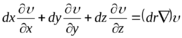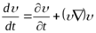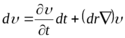 берется при постоянных х, у, z, т.е. в заданной точке пространства. Вторая часть изменения скорости равна