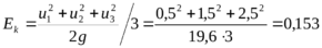 Оценим кинетическую энергию потока точнее. Для этого возьмем три точки на высоте h1 = 1м; h2 = 3 м и h3 = 5 м, которые лежат посредине слоев равной высоты по 2 м каждый. Скорость в этих точках соответственно и1 = 0,5; и2 = 1,5 и и3 = 2,5 м/сек. Вычислим кинетическую энергию по этим трем скоростям