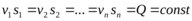 или, выражая расход жидкости в сечениях через среднюю скорость v, получим