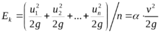 Определим среднее значение этой величины в сечении потока. Для этого действительные скорости элементарных струек u1, u2, ..., ип заменим средней скоростью потока v; тогда среднее значение удельной кинетической энергии потока в данном сечении равно