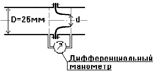 Задание. Для настройки регуляторов расхода на расход, обеспечивающий транспортный режим движения АСПИ (см. п. 2.2), применен расходомер, где в качестве сужающего устройства использовано мерное сопло, установленное в трубе диаметром D = 25 мм (рис. 6).