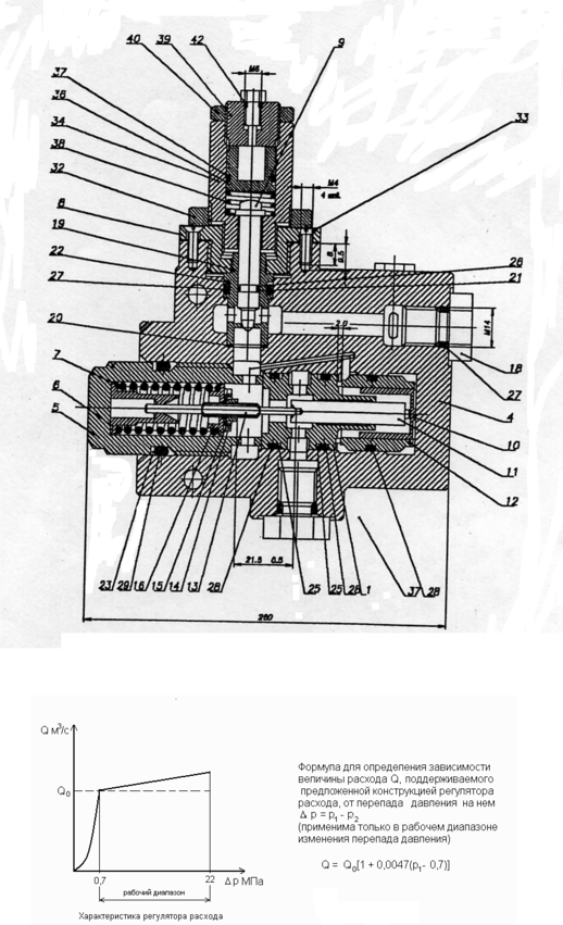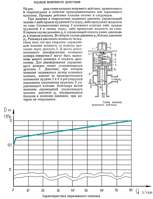 а) Зависимость поддерживаемого переливным клапаном давления от величины перепускаемого через него расхода рабочей жидкости, определяемой характеристикой клапана (приведена в приложении 5);