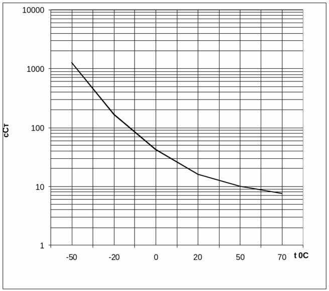 График зависимости кинематического коэффициента вязкости масла АМГ 10 от температуры