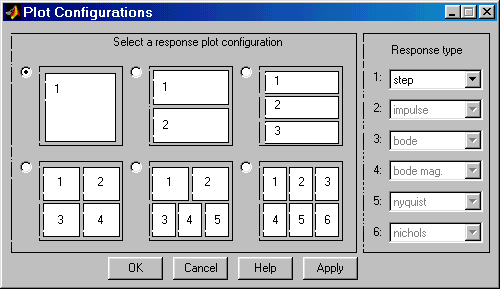 Для получения остальных характеристик системы необходимо выполнить команду Edit\Plot Configuration... в окне LTI Viewer. В результате выполнения этой команды откроется окно: