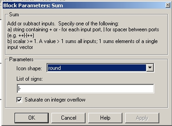 В поле List of signs указывается список знаков входов сумматора. Здесь список – идущие подряд знаки + и – в необходимом количестве.