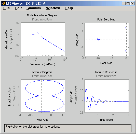 Ниже приведен пример окна Simulink LTI-Viewer с несколькими различными характеристиками исследуемой системы.