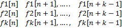 Система разностных уравнений связывает решетчатые функции f1[n], f2[n], .. , fi[n] и их разности вплоть до порядков k1, k2, …, ki соотвественно. В общем случае систему разностных уравнений можно записать следующим образом: