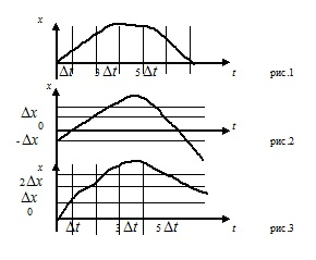 При смешанном квантовании происходит преобразование непрерывного сигнала в дискретный через равные временные промежутки, но при этом выделяется ближайший уровень непрерывного сигнала (рис.3).