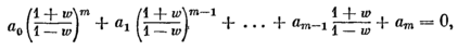 Все корни |zi| уравнения, лежащие внутри единичного круга, перейдут в левую полуплоскость w. Поэтому при использовании преобразованного характеристического уравнения для устойчивости импульсной системы необходимо и достаточно, чтобы все корни w( (i = 1, 2, ..., т) имели отрицательные вещественные части. Границей устойчивости будет случай попадания какого-либо корпя wi на мнимую ось, когда все остальные wi лежат слева от нее.