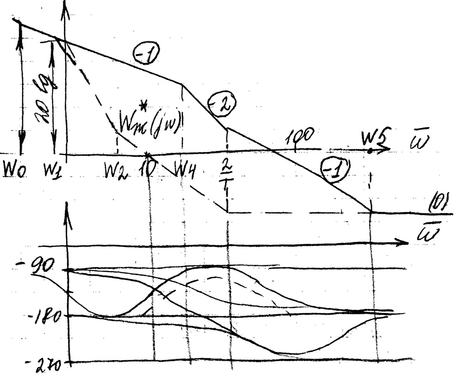 Желаемый ЛАЧХ строиться так же как и в непрерывных системах