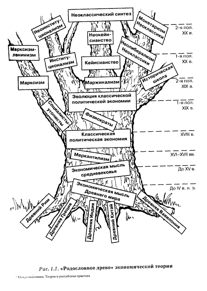 Обобщим наш краткий экскурс в историю. На рис. 1.1 показано, как от своих корней в Древнем мире наука постепенно набирала силы и подразделялась на самостоятельные экономические школы. Хорошо прослеживается значение классической политической экономии — ствола, от которого отходят ветви всех современных научных концепций.