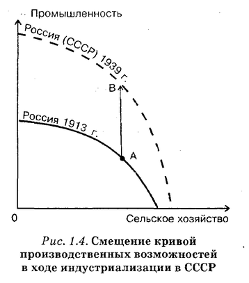 что это расширение коснулось как самой промышленности, так и, хотя и в меньшей степени, сельского хозяйства. Причины роста производственных возможностей промышленности очевидны. Именно сюда были и направлены основные инвестиции. Сельское хозяйство, напротив, было финансовым донором. Ценой ускоренного роста индустрии было обнищание деревни (а порой и просто голод). Но появление тракторов и прочей техники, в конечном счете, увеличило и производственные возможности аграрного сектора.