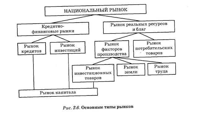Рынок нельзя представлять как некий монолит. В реальности он имеет сложную структуру, и рыночные отношения происходят на рынках различного вида (рис 2.6).
