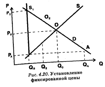 Установившиеся равновесные цены, в силу разных обстоятельств, не всегда устраивают общество. Государственное вмешательство в этом случае может принимать форму принудительного (законодательного) установления фиксированных цен.