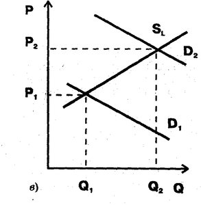 Зато в долгосрочном периоде при благоприятном изменении спроса наращиванию предложения почти нет границ. Поэтому кривая . весьма эластична. Реакцией на рост спроса становится большое увеличение производства при весьма умеренном росте цен (кривая S1). Возможно даже, что цена останется постоянной, т.е. реализуется абсолютно эластичная кривая предложения.