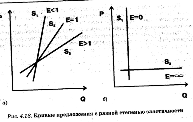 На рис. 4.18 б S1 — абсолютно неэластичное предложение (Е =0); , S2 — абсолютно эластичное предложение (Е =∞).