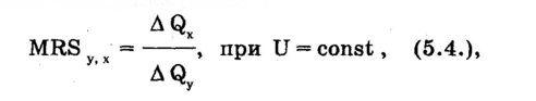 где MRSy,x — предельная норма замещения благ Y и X; Qx, Qy — количества взаимозамещаемых благ X и Y; U = const — фиксиро ванный уровень полезности для достигнутого уровня благосостояния потребителя.