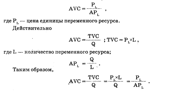 Между средними переменными издержками AVC и средним продуктом по переменному ресурсу APL также имеется обратная зависимость.