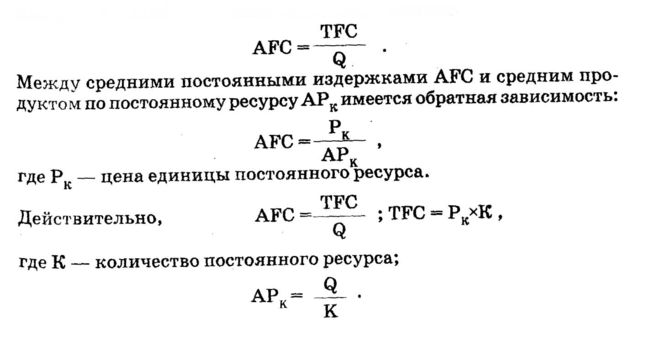 редние постоянные издержки (AFC) характеризуются затратами постоянного р