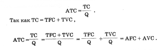 редние общие (суммарные) издержки (АТС) характеризуют затраты переменного и постоянного ресурсов, с которыми в среднем производится единица продукции. АТС определяется отношением валовых издержек ТС и величины выработки Q:Величина средних общих издержек представляет большой интерес для предпринимателя. Ведь, сравнивая его с ценой единицы выпускаемой продукции, он может оценить свою прибыль от каждого выпущенного товара.