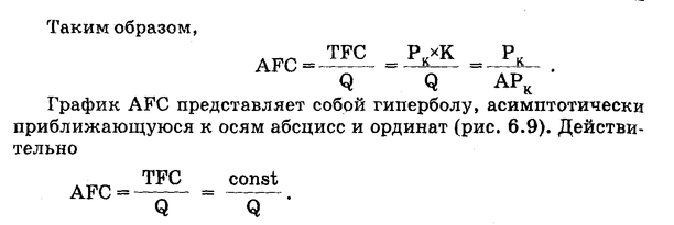 есурса, с которыми в среднем производится единица продукции. AFC определяются отношением постоянных издержек TFC и величиной выработки Q: