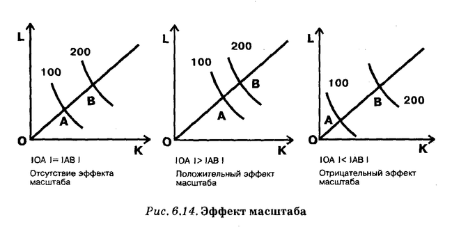 Это Различие в соотношении роста выработки и ресурсов в теории получило название эффект масштаба. Эффект масштаба — соотношение (коэффициент) изменения объема производства при изменении количества всех используемых ресурсов.