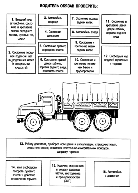 Контрольные осмотры проводятся водителями (механиками-водителями) перед использованием машин в целях проверки и подготовки машины к выполнению предстоящей задачи.