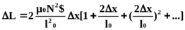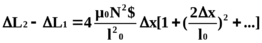 Данное выражение может рассматриваться как функция преобразования электромагнитного ЧЭ. Видно, что зависимость коэффициента самоиндукции L от перемещения х нелинейна. При x << l0 зависимость L от х апроксимируется рядом: