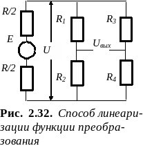 Улучшение функции преобразования мостовой схемы заключается в линеаризации характеристики и компенсации влияющих факторов. Так же как и в потенциометрических схемах наиболее известны два способа: работа на малом участке характеристики и дифференциальное включение ЧЭ.