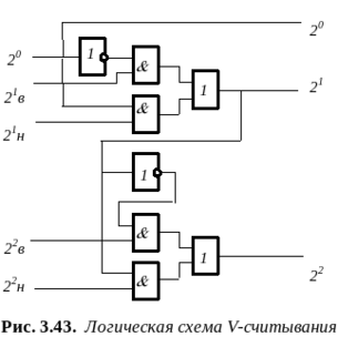 Одним из таких методов является V-считывание, особенно распространенное в контактных ДПП (рис. 3.42). Здесь сохраняется обычная двоичная шкала, но на каждой дорожке, кроме младшей используется по два приемника.