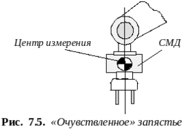 одель активной силомоментной адаптации является наиболее распространенной. В соответствии с ней СМД выполняется в виде совокупности упруго-чувствительных элементов, измеряющих силовые факторы по трем осям связанной с ним системы координат (рис. 7.5). Первый подобный датчик был разработан сотрудником Массачусетского технологического института (США) В. Шейнманом в 1951 г. Управление приводами исполнительного механизма осуществляется по информации от СМД. Системы этого типа впервые позволили избежать заклинивания при сборке цилиндрической пары: еще в 1976 г. П. Уотсон осуществил установку цилиндра диаметром 40 мм в отверстие с допуском 15 мкм за 0,2 с.