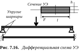 Максимальное разделение деформаций достигается применением в СМД дифференциальных схем УЭ. В такой схеме точка приложения силового фактора совпадает с «центром измерения» датчика, причем его перемещение осуществляется строго в направлении действующей компоненты. Примером такого УЭ является изгибная балка на двух симметричных опорах (рис. 7.16). Большим достоинством дифференциальных схем СМД является возможность привести матрицу жесткости к диагональному виду, и, тем самым, теоретически компенсировать перекрестные связи в конструкции. В этом случае, перекрестные связи в датчике будут обусловлены уже не конструктивными факторами, а только технологическими причинами (качеством наклейки ТР, их соосностью и т.д.) и составлять не 15 … 20%, а всего лишь 1 … 3%.