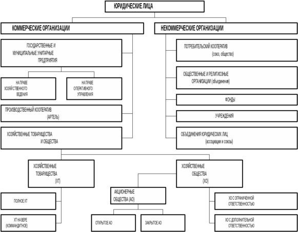 Схема юридических лиц для ведения предпринимательской деятельности в РФ представлена на рис. 1