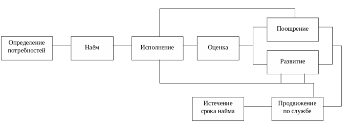 Повышение, понижение, перевод, увольнение: разработка методов перемещений работников на должности с большей или меньшей ответственностью, развитие их профессионального опыта путем перемещения на другие должности или участки работы, а также процедур прекращения договора найма;