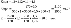 Применяемый в расчетах по всем методам определения численности коэффициент пересчета явочной численности в списочную позволяет учесть вероятное отсутствие персонала на рабочих местах в течение планового промежутка времени из-за: болезни, очередного или дополнительного отпуска, отпуска по учебе, прочих уважительных причин.