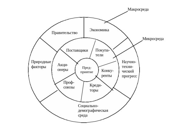 - микросреда (отраслевое или ближнее окружение).