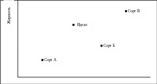 Чем полнее соответствует товар желаниям потребителя, тем большего успеха добьется производитель. Предположим, изготовитель мороженого спрашивает своего потребителя, какой именно степени жирности и сладости мороженое тому нравится. Предположим также, что ответ представлен на рис. 2 точкой с пометкой «Идеал». После этого потребителя просят попробовать три конкурирующих сорта мороженого и дать определение степени их жирности и сладости. Соответствующие места каждого сорта также представлены точками на рис. 2. Сорт Б в большей мере, чем другие, сочетает в себе идеальные уровни желаемых свойств. Если производитель предложит мороженое, стоящее к потребительскому идеалу ближе, чем сорт Б, новинка должна пойти на рынке лучше этого сорта при сопоставимости их цен, степени доступности и прочих условий.