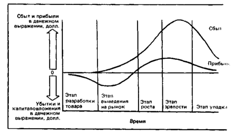 Выпустив новинку на рынок, руководство молится, чтобы у нее была долгая и счастливая жизнь. Хотя никто не рассчитывает, что товар будет продаваться вечно, фирма стремится обеспечить получение приличной прибыли в качестве компенсации за все усилия и риск, связанные с появлением нового товара. Руководство надеется, что сбыт будет высоким и долговременным. Оно знает, что у каждого товара есть собственный жизненный цикл, хотя характер и протяженность этого цикла предугадать нелегко.