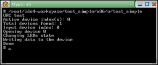 Запустим файл в консоли (“Launch” – “Utilities” – “Console”). Для вставки пути из буфера обмена нажмите на Ctrl+Alt+V. Ход выполнения программы показан на рисунке 4.2. При этом на плате должны загореться светодиоды LED0, LED2, LED4 и LED6.